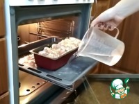 Форму нужно поставить в глубокий противень с водой. Выпекать в разогретой духовке до 200 градусов примерно 2 часа. |