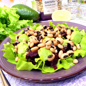 Описание: Трехцветный салат из свеклы, фасоли "Черный глаз" и авокадо-не только необычайно вкусен, но и несомненно полезен. Карамельная сладость запеченной в духовке свеклы, гармонично "дружит"с нейтральным вкусом авокадо, дополняет этот яркий салат очень вкусная фасоль "черный глаз", с тонкой кожицей и ореховым ароматом.