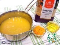 В небольшой кастрюльке нагрейте апельсиновый сок с сахаром (сахар должен полностью раствориться), добавьте мед и апельсиновую цедру. |