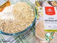 В отдельной миске смешайте сухие ингредиенты :муку+орехи (крупно-измельченные), овсяные хлопья (быстрого приготовления, измельчать не надо)и разрыхлитель. |
