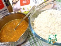 Сухую смесь смешайте со сладким соком, тесто оставьте при комнатной температуре минут на 30 (овсяные хлопья набухнут во влажном тесте). |