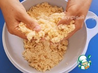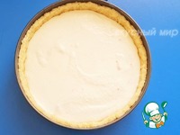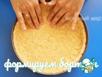 Дно формы застелить пергаментом, пересыпаем крошку в форму и распределяем ровным слоем формируя небольшой бортик. |