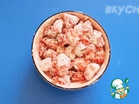 Клубнику (можно любые ягоды) нарезаем кубиком. Добавляем крахмал и перемешаем. |