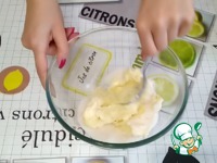 Отдельно в миску выкладываем мягкое сливочное масло. Добавляем сахар, ванильный сахар. Все перетираем. |