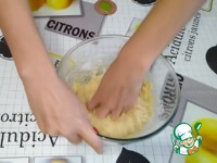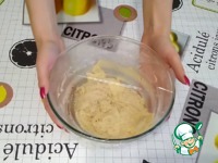Постепенно добавляем просеянную муку, разрыхлитель. Хорошо замешиваем тесто. |
