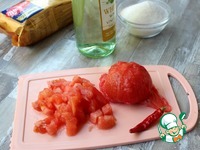 Помидоры ошпарить кипятком, обдать холодной водой, снять кожицу, нарезать маленькими кубиками. |