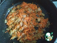 Лук и морковь очистить. Лук мелко порезать, и обжаривать на растительном масле до прозрачности. Морковь натереть на терке и добавить к луку. Обжаривать все вместе в течении 3 минут. |