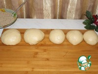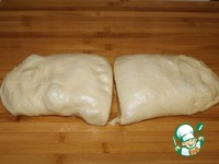 Подошедшее тесто немного обминаем. Делим на две равные части. |