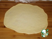 Раскатываем один из двух больших кусочков теста чуть больше диаметра формы. У меня форма диаметром 30 см. |