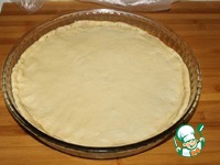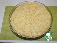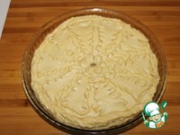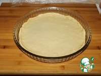 Сверху начинки выкладываем пласт теста, раскатанный из последнего большого кусочка, диаметром чуть больше формы. Защипываем края. |