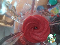 Клубнику перебить с сахаром до однородного состояния. Я использовала замороженные ягоды. Добавить сок лимона. Перемешать. |