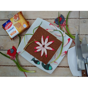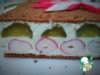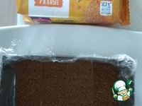 Форму выстелить пищевой плёнкой. Уложить хлебцы. На 1 ряд уходит 5.5 шт. |