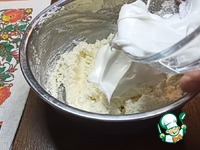 Взбитые белки порционно вмешиваем в творожную массу, чтобы сделать её более воздушной. |