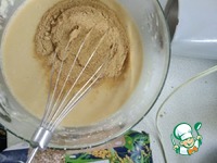 Пакетики чая заварить в 200 мл горячей воды. Смешать все жидкие ингредиенты для пирога. |