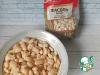 Фасоль замочите на 6-8 часов в достаточном количестве холодной воды. Затем смените воду и варите до мягкости (около 1,5 часов). Отвар в котором варилась фасоль весь не выливать. |