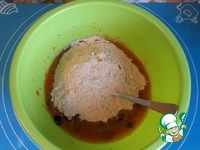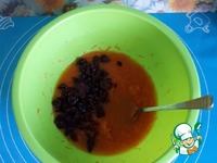 В чаше смешать сахар, морковь, цедру, сок апельсина, растительное масло, добавить сушеную клюкву (можно заменить изюмом) |