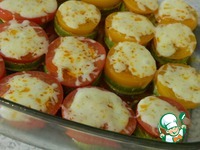 Она красиво смотрится на столе, не стыдно подать и гостям. Чесночок не такой ядреный, как если бы мы подавали просто жареные кабачки с чесноком. Очень аппетитно и быстро готовится. |