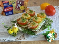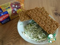Слегка остывшие кабачки разложим на хлебцы. Закуска готова. |