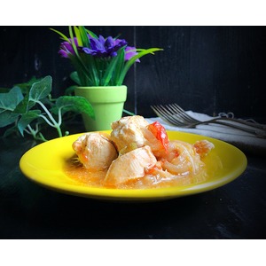 Описание: Нежная, вкусная курочка с ароматной овощной подливой.