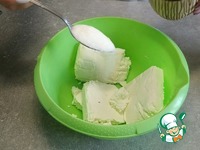 2. В тарелку выкладываем творог, добавляем ванилин, сахар |