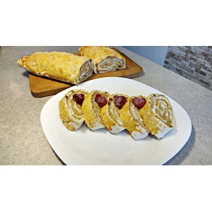 Описание: Рулет из лаваша с начинкой из творога и яблок с изюмом. К чаю на скорую руку. Начинку можно менять и готовить хоть каждый день.