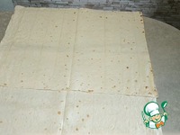 Выкладываем листы лаваша внахлёст. Сверху распределяем начинку |