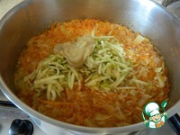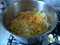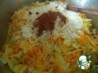 Добавить капусту к луку с морковью и притушить до мягкости в течение 5 минут. |