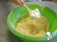 Добавляем муку, ванилин. Замешиваем тесто. В ходе замеса добавляем сметану. |