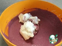 Готовим начинку. В тарелке смешиваем творог, сметану, яйцо, сахар и чернику. пробиваем блендером. Чернику предварительно размораживаем и сок сливаем. |