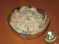 Все ингредиенты выложить в салатник, добавить чеснок, выдавленный через чеснокодавилку, заправить майонезом. Салат готов! Приятного аппетита! |