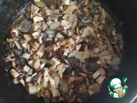 Грибы мелко порезать и обжарить с луком на сковороде. |
