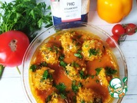 Залить горячей заливкой голубцы. Форму прикрыть фольгой и отправить запекаться при температуре 180 гр 40мин. |
