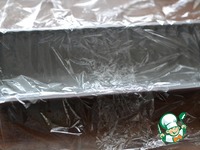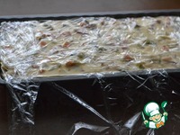 Вылить яичную массу в форму. Прикрыть пленкой со всех сторон. Поставить закуску в холодильник до полного застывания, желательно на ночь. Перед подачей удалить пленку и нарезать закуску на кусочки. |