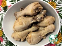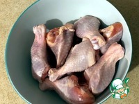 Берем голени курицы. По желанию, голени можно немного промариновать в соке (от 1 до нескольких часов в холодильнике). |