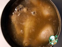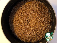 Промываем гречневую крупу и варим 8 минут в бульоне курочки. |