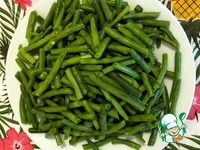 Во время варки курицы и гречки, необходимо вымыть и обрезать кончики зеленой фасоли. Отварить 6 минут в кипящей воде и быстро остудить на плоской тарелке, чтобы она не переварилась. |