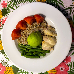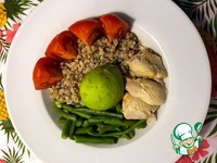 Описание: Курочка варится в соке квашеной капусты, затем гречка варится в этом бульоне, насыщаясь полезными макро- и микроэлементами капусты и моркови. Отварная зеленая фасоль обогащает это блюдо клетчаткой и другими полезными элементами. Если будете использовать постное мясо для этого блюда, то в качестве полезных жиров здесь хорошо подходит авокадо. Помидоры хорошо увлажняют гречку, делая это блюдо не только еще более полезным, но и очень вкусным.