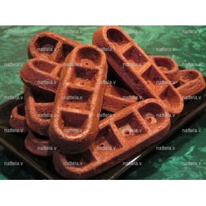 Поставить на разогрев вафельницу. P.S. Моя вафельница рассчитана на 6 мини-вафель, но выпекать можно в любой электровафельнице на панели для толстых вафель. |