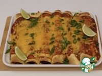 Описание: Традиционное блюдо мексиканской кухни. Энчилада представляет собой тонкую лепёшку (тортилью) из кукурузной муки, в которую завёрнута начинка. Начинка чаще всего мясная (обычно из курятины)