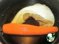 Бульон тоже получается очень вкусным, его необходимо процедить и можно использовать вместе с морковью для приготовления заливного или для первых блюд, а вареную луковицу стоит выбросить. |
