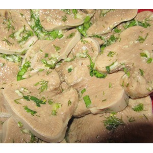 Описание: Пикантная и очень вкусная закуска, которую можно приготовить из любого отварного языка.