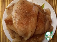 4) И затем солим, перчим и посыпаем приправой для курицы, убираем в сторону. |