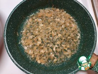 Чеснок очистить и выложила в ступку. Туда же засыпала соль и все приправы,. Тщательно перетереть специи с чесноком в ступке. Лук (кубиками) обжар. на сливочном масле. |