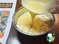 В полученную массу добавляем заготовленную ранее яично-сметанную смесь и хорошенько всё перемешиваем. |