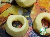 Очищаем яблоки от кожуры, разрезаем вдоль и удаляем сердцевину. Всего получается 12 таких колечек. |