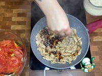 Куриное филе обжарить до готовности. Добавить соус терияки и кунжут. |