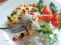 Описание: Это конечно второе блюдо к какому-то гарниру. Хотя можно есть и как основное. Диетическое рыбное блюдо, приготовленное из филе минтая в яично-овощной заливке.