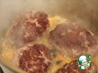 Сформовать из фарша четыре лепёшки и аккуратно завернуть в них яйца. |