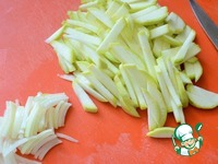 Кабачок и лук нарезать брусками. |