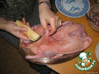 Описание: Собственно, тут уже, как минимум, два варианта птички, нафаршированной эдаким манером, есть. Но все равно свой выкладываю - сочетание фаршей в блинах получилось необыкновенным!
